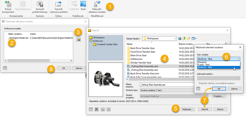 V dialogu Výběr sestavy klikněte na tlačítko Možnosti a určete reprezentace modelu. Poté v dialogu Možnosti otevření souboru: