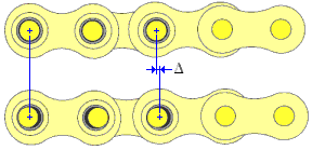 Plocha ložiska řetězu je určena šířkou vnitřního článku řetězu a průměrem svorky. Skutečné hodnoty jsou definovány pro každý řetěz v datových souborech XML.