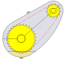 řetězový pohon se dvěma řetězovými koly na paralelních horizontálních hřídelích;
