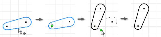 Chcete-li zkopírovat nebo posunout geometrii v náčrtu aplikace Inventor, vyberte jeden nebo více elementů a poté definujte základní bod nového umístění geometrie. Geometrii otočíte tak, že vyberete elementy a poté určíte středový bod.