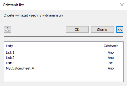 Kliknutím na tlačítko OK odstraňte určené listy.