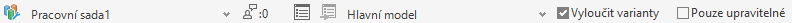 V zájmu urychlení práce na sdíleném projektu můžete použít stavový řádek. Tlačítko Pracovní sady v rozevíracím seznamu Aktivní pracovní sada má stejné funkce jako odpovídající nástroje na kartě Spolupráce
