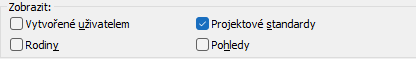 Standardy projektu. Obsahuje všechna nastavení platná pro celý projekt a definovaná pro projekt (například styly čar a vzory výplně). Pracovní sady standardů projektu není možné přejmenovat nebo odstranit.