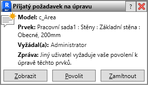 K usnadnění komunikace při práci na sdílených projektech obdrží členové týmu automatické oznámení o vyžádání, povolení nebo zamítnutí požadavků na vypůjčení prvků.