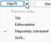 Otevření pracovních sad pomocí dialogu Pracovní sady