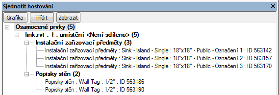 V projektu se zobrazí osamocené prvky s využitím těchto nastavení.