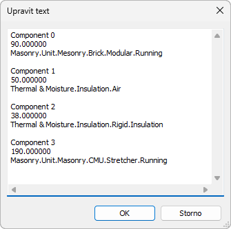 - Popis komponenty: seznam komponent stěny, jejich materiálů a velikostí