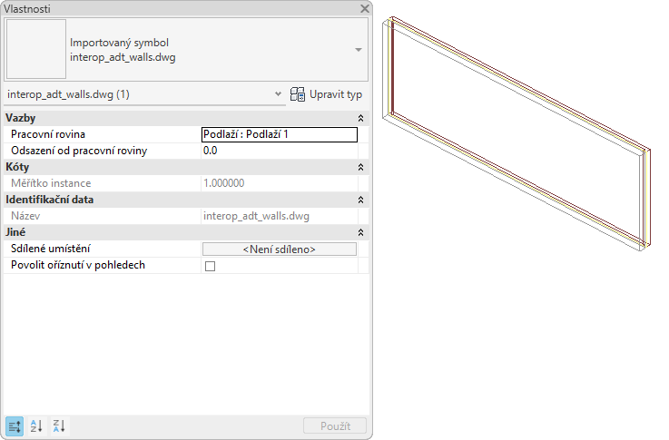 - V nástroji Prohlížeč projektu vyberte pohled, ve kterém chcete zobrazit importované stěny.