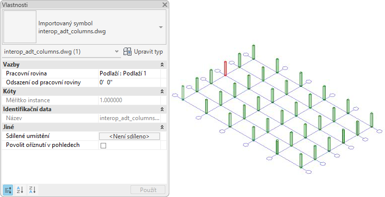 Sloupy aplikace Revit vytvořené z importovaných sloupů aplikace AutoCAD Architecture
