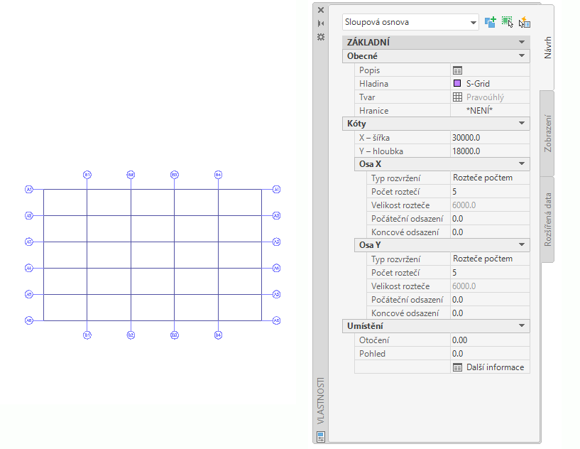 Sloupová osnova v aplikaci AutoCAD Architecture