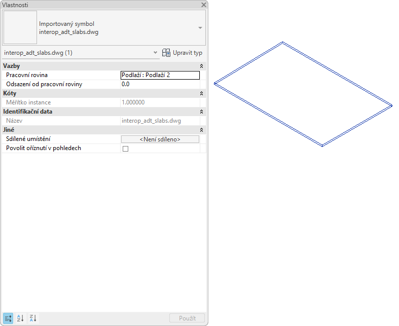 Importovaný výkres se zobrazuje jako samostatný symbol importu.