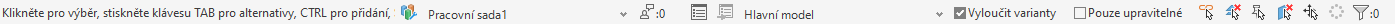 Chcete-li na stavovém řádku skrýt pouze ovládací prvky Pracovní sady nebo Varianty návrhu, zrušte výběr odpovídajících zaškrtávacích políček.