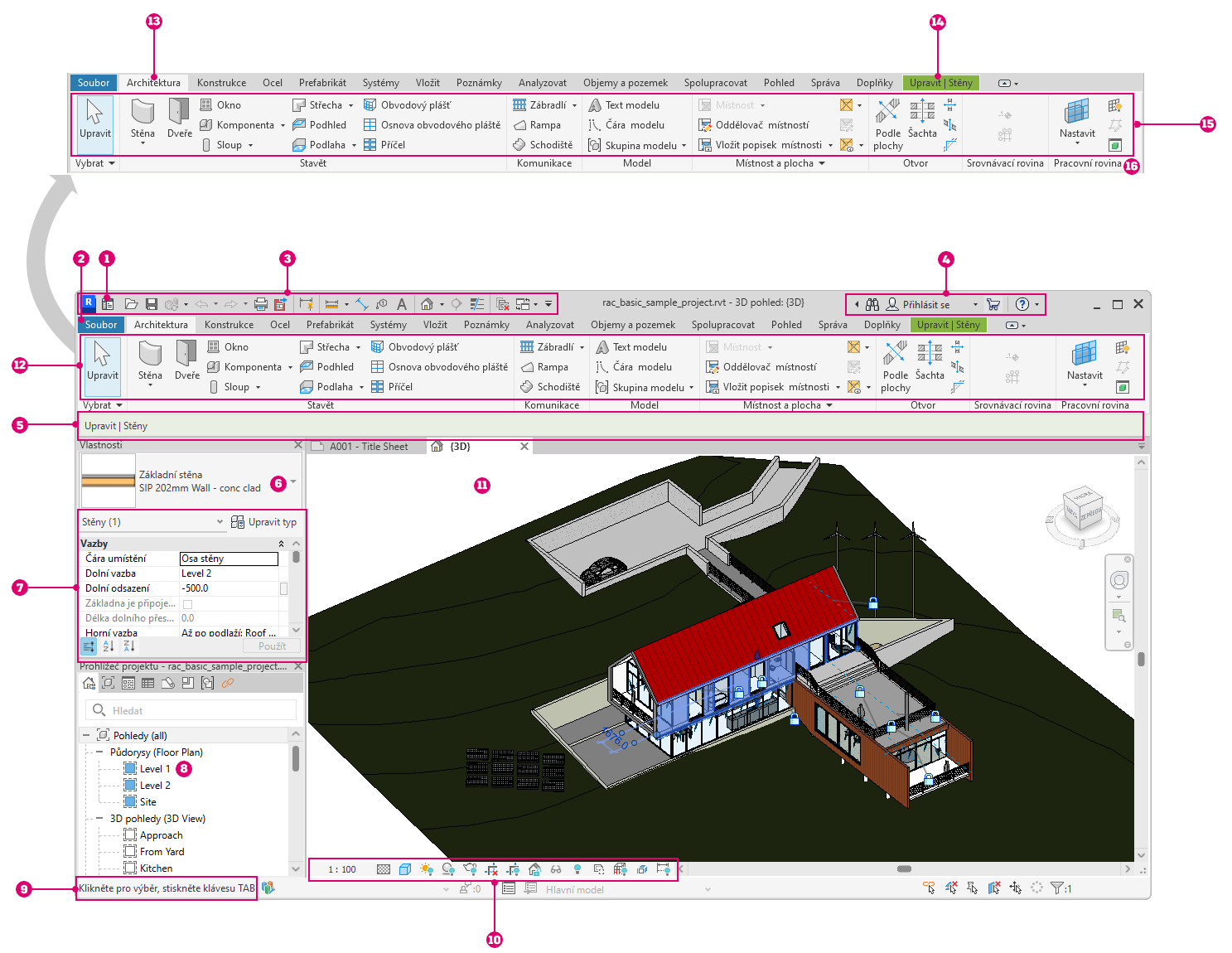 | 1 | Výchozí stránka aplikace Revit |