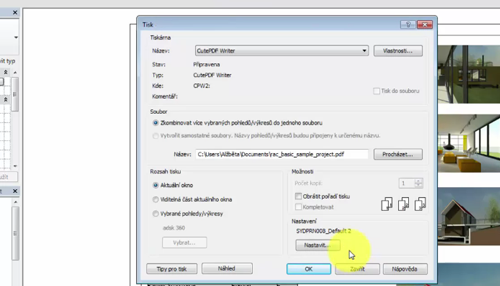 Chcete-li představit model klientům nebo členům týmu, exportujte procházku jako video (soubor AVI) nebo sérii obrázků.