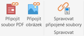 Všechny připojené obrázky a soubory PDF můžete spravovat kliknutím na tlačítko Správa připojených souborů na kartě Vložit.