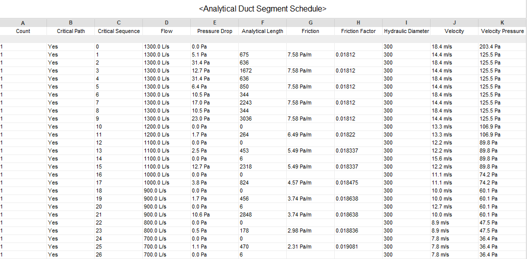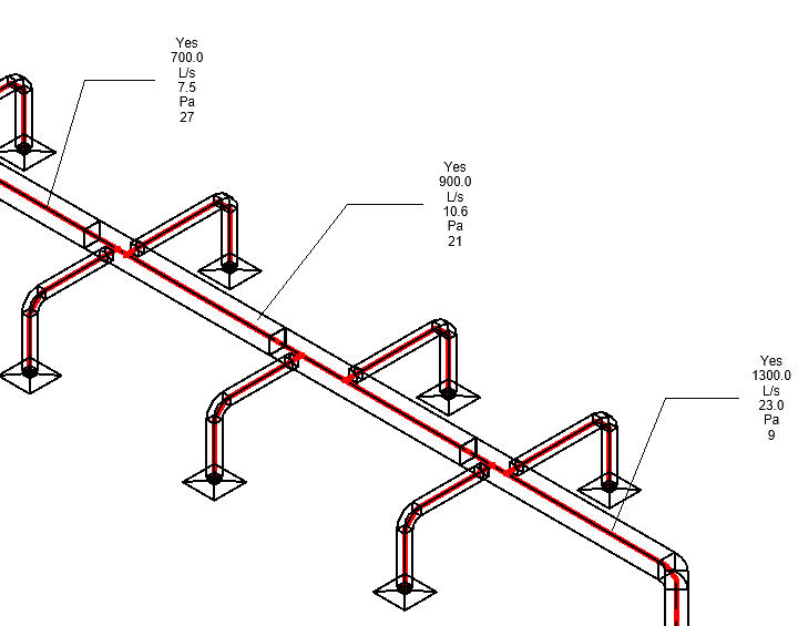 Analytické prvky lze uvádět ve výkazech i popisovat. Pomocí výkazů je možné zjistit celkovou délku systému a tlakovou ztrátu podél něj. Pomocí výkazu lze také identifikovat prvky, které jsou součástí kritické trasy. Opatřete analytické prvky v pohledu popiskem a vytvořte izometrický diagram systému, který zobrazuje průtok a tlakové ztráty. Při tomto způsobu zobrazení nebudete muset tolik využívat inspektor systému nebo jiné nástroje. Návrh a dokumentace systému TZB je s analytickými segmenty jednodušší.