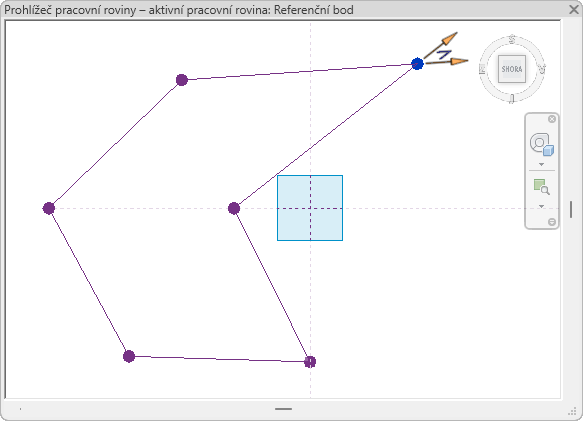 Prohlížeč pracovní roviny je dostupný ze všech pohledů modelu v prostředí projektu. Výchozí orientace je aktivní pracovní rovina posledního aktivního pohledu.
