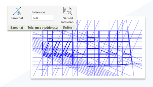 Snadno vizualizujte zarovnané osnovy a detekované reference v horizontálních rovinách používaných v automatizaci Fyzické na analytické pro budovy.
