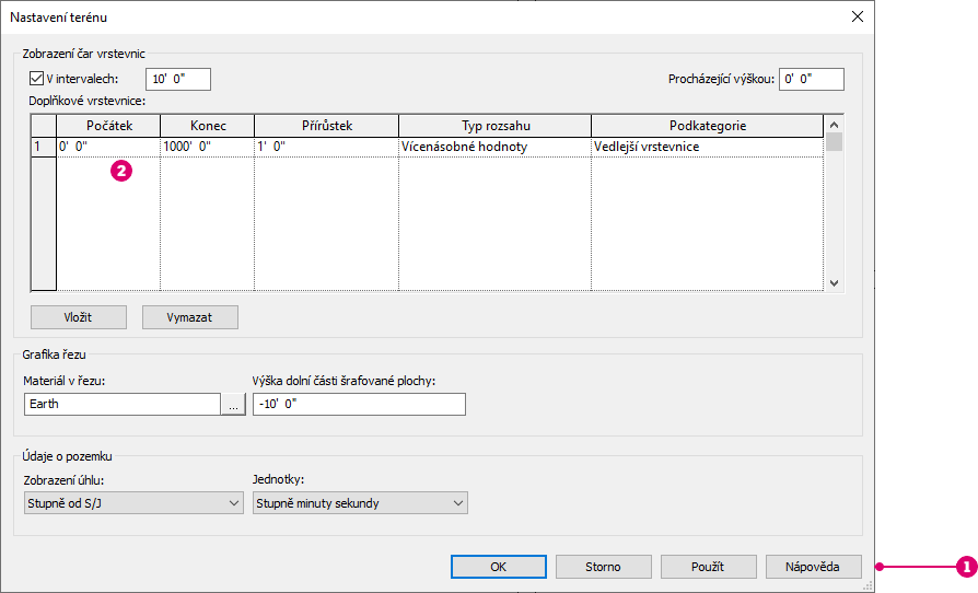 . Dialog můžete zvětšit a pak můžete upravit další nastavení vrstevnic