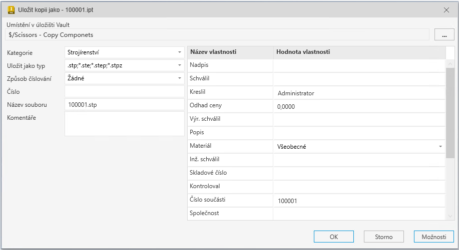 Pomocí příkazu Uložit kopii jako lze kopírovat součásti, sestavy, výkresy a prezentace do jiných formátů, například DWG, STP, PDF nebo DXF.