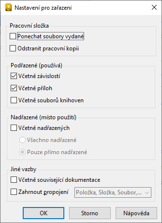 Chcete-li operaci úložiště použít na související soubory výkresů, vyberte možnost Zahrnout související dokumentaci.