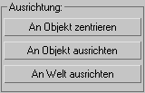 Die Hilfsmittel aus dieser Gruppe hängen davon ab, ob die Option Nur Drehpunkt beeinflussen oder Nur Objekt beeinflussen im Gruppe Verschieben/Drehen/Skalieren (siehe oben) aktiviert ist. Die Werkzeuge sind nicht verfügbar, wenn Nur Hierarchie beeinflussen aktiviert ist.