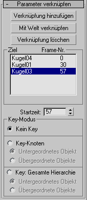 Dadurch wird ein Welteintrag bei Frame 0 in der Verknüpfungsliste im Rollout "Verknüpfungsparameter" hinzugefügt.