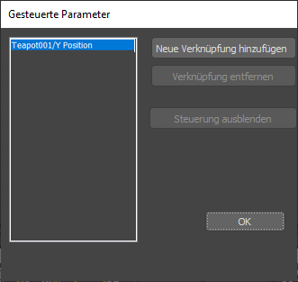Klicken Sie mit der rechten Maustaste auf einen gesteuerten Controller in der Hierarchie "Spuransicht", um das Dialogfeld "Gesteuerte Parameter" anzuzeigen. Im Listenfenster werden alle zugewiesenen Spuren angezeigt.