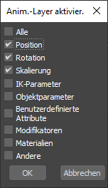 Die Spuren "Position", "Rotation" und "Skalierung" sind in der Standard-Einstellung aktiviert. Sie können auch weiterhin andere Attribute als die in diesem Dialogfeld aktivierten animieren, sie unterliegen aber nicht der Steuerung durch den Layer-Controller.