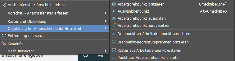 - Auf die Option "Arbeitsdrehpunkt platzieren" kann auch über Strg+Umschalt+` zugegriffen werden.