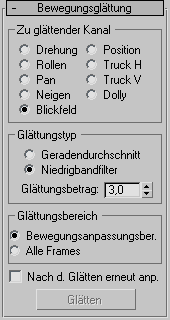 Über die Optionen im Rollout "Bewegungsglättung" können Sie die Glättungsoperationen steuern und durchführen, nachdem die Anpassung berechnet wurde.