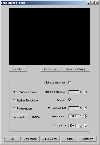 Damit werden die Vorgaben von Lens Effects Focus wiederhergestellt.