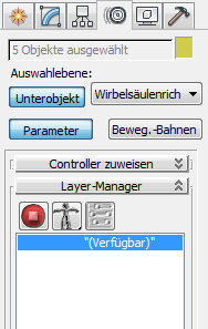 Die Einstellungen des Rollouts "Wirbelsäulenkrümmung" bestimmen, wie weit die Wirbelsäulenverbindungen relativ zueinander gedreht werden. Mit anderen Worten wird gesteuert, wie die Drehung der Hubs zueinander entlang der Wirbelsäule verteilt wird.