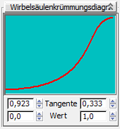 Sie können den Spline durch Anpassung der Einstellungen für "Tangente" und "Wert" am unteren Rand des Rollouts bearbeiten.