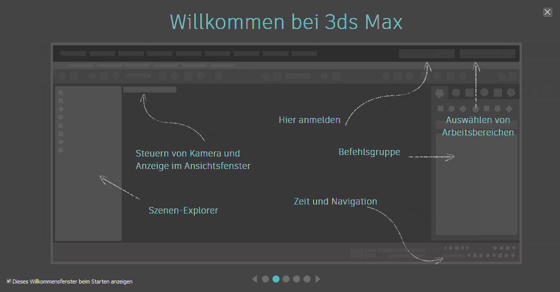 Der Begrüßungsbildschirm präsentiert eine Reihe von Folien, die neue Benutzer motivieren und ihnen mit einigen grundlegenden Informationen beim Einstieg helfen sollen.