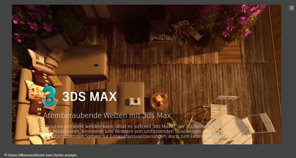 Wichtig: Wenn der Begrüßungsbildschirm leer ist, kann dies an veralteten Grafiktreibern, Resten einer vorherigen Installation oder einem Windows-Update liegen. Um den Bildschirm zu schließen, bewegen Sie den Mauszeiger über die obere rechte Ecke des leeren Bildschirms und klicken Sie, um das Fenster zu schließen.