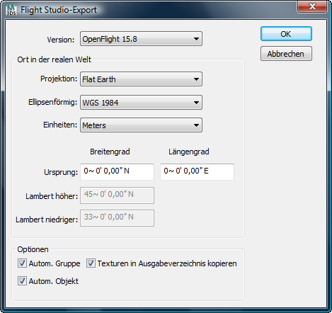 Stellt Optionen für den Export in das Flight Studio-Format bereit.