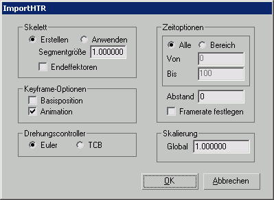 - Wenn diese Option aktiviert ist, werden alle Animations-Keys importiert. Vorgabe = Aktiviert.