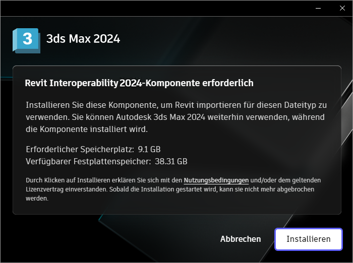 3ds Max enthält eine On-Demand-Installation für Revit- und Inventor-Importe, sodass die Komponenten für die Interoperabilität von
