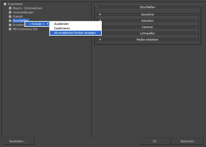 | 2010.0 (und später) | C:\Dokumente und Einstellungen\<Benutzername>\Eigene Dateien\3dsmax\FBX\Presets (Windows XP)