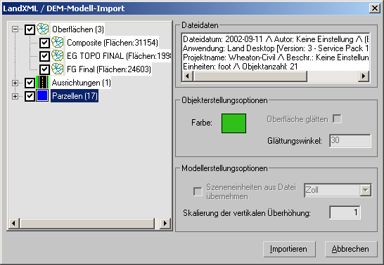 Dialogfeld "LandXML/DEM-Modell-Import"