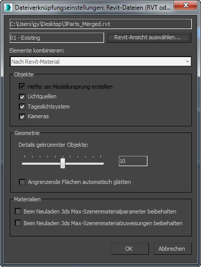 Warnung: "Nicht kombinieren" ist eine einfache Möglichkeit, aber wenn die Revit-Zeichnung groß ist, kann die Leistung von 3ds Max darunter leiden.