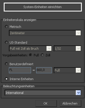 Das Plug-In ermittelt die vorgegebenen Einheiten in 3ds Max im Dialogfeld "System-Einheiten einrichten" über die System-Einheitenskalierung. Weitere Informationen zu fehlerhaften oder unerwünschten Skalierungsergebnissen finden Sie unter Warum wird meine Szene in 3ds Max anders skaliert?.