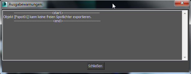 Da 3DS ein DOS-Format ist, können für Dateinamen maximal 12 Zeichen verwendet werden: 8 Zeichen für den eigentlichen Namen, '.' (Punkt) und eine Dateinamenerweiterung mit 3 Zeichen. Wenn die Szene Texturen mit Bitmaps enthält, deren Namen länger sind als 12 Zeichen, wird beim Exportieren der Datei der Dateiname abgeschnitten. 3ds Max zeigt eine Warnmeldung dazu an: