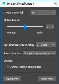 - Abgeflacht: Objekte werden nicht gruppiert und als unabhängige 3ds Max-Objekte importiert.