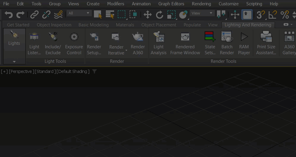 "Licht einschl./ausschl." ist ein nicht-modales Dialogfeld, in dem Sie Objekte auf der Grundlage der Lichtquelle ein- oder ausschließen können. Ausgeschlossene Objekte werden von dem angegebenen Licht nicht bestrahlt und erhalten keine Schatten.