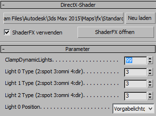 - Beenden Sie die Gruppenansicht, und minimieren Sie den ShaderFX-Editor. Die Attribute "MyColor" und "MyMultiplier" sind jetzt im Rollout "Parameter" verfügbar.