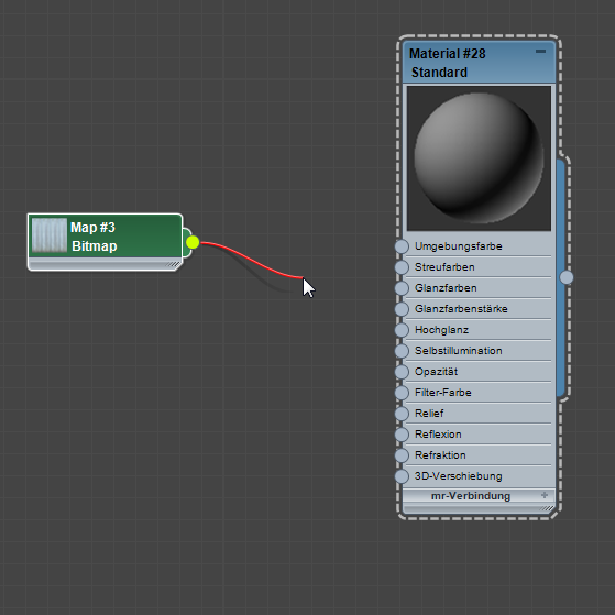 Ablegen der Vernetzung auf der Eingangsbuchse der Streufarbe wendet das Map auf die Streufarbenkomponente des Materials an.