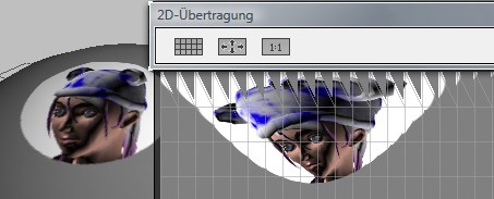 Das Bild, das direkt auf die Kugeloberfläche aufgetragen wird (links), wird im 2D-Malfenster verzerrt dargestellt.