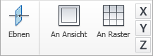 Die Gruppe "Ausrichten" bietet Hilfsmittel für das Ausrichten von Objekt- und Unterobjektauswahlen an der Ansicht oder dem Raster oder einfach zum Abflachen eines Netzes. Sie steht auf der Objektebene und allen Unterobjektebenen zur Verfügung.